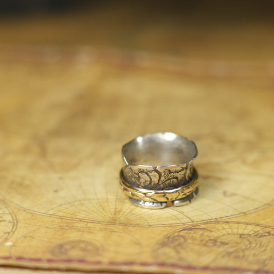 9ct Yellow Gold Spinner Ring on Textured Sterling Silver US Size 6