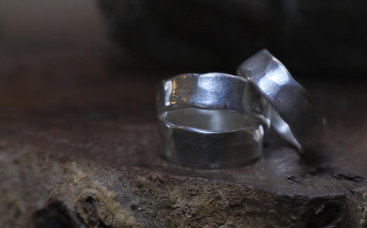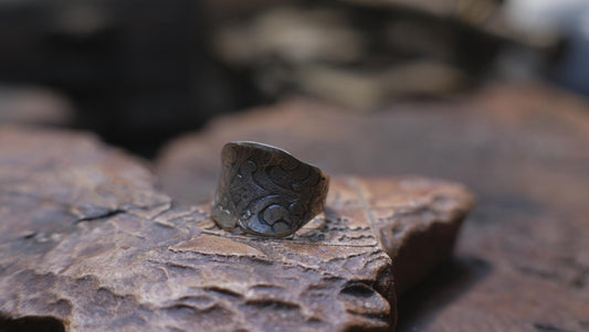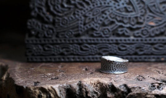 Handmade Sterling Silver Wide Banded Textured Ring - Oxidised Finish
