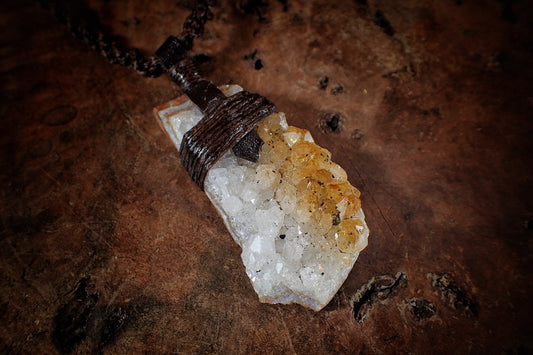 Citrine Cluster Pendant on Hand Woven Adjustable Black Macrame Necklace Cord