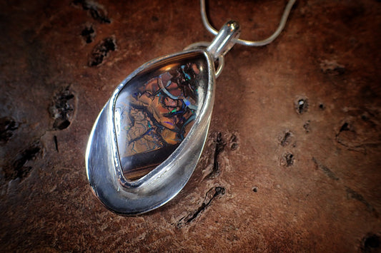 Incredible Rich Boulder Opal and Silver Pendant on a Snake Chain