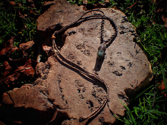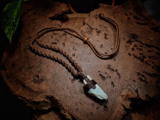Tribal Amazonite Pendant with Hand Woven Adjustable Spiraling Macrame Cord