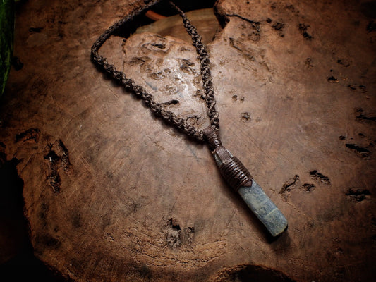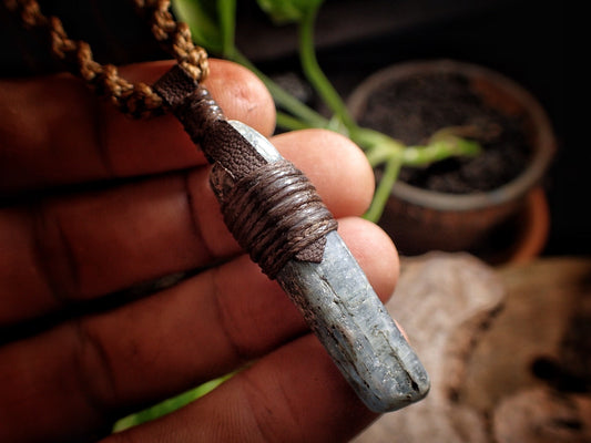 Blue Kyanite Crystal Pendant on Hand Woven Adjustable Macrame Style Necklace
