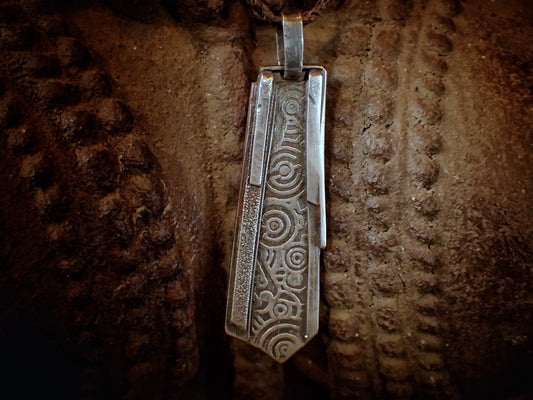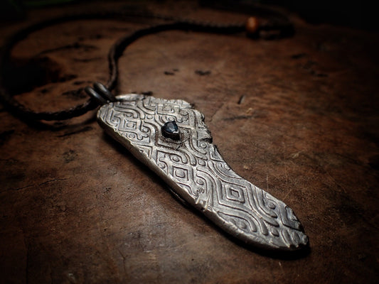Temple Relic Amulet with Sapphire ~ Unique Rustic Texture Silver Pendant