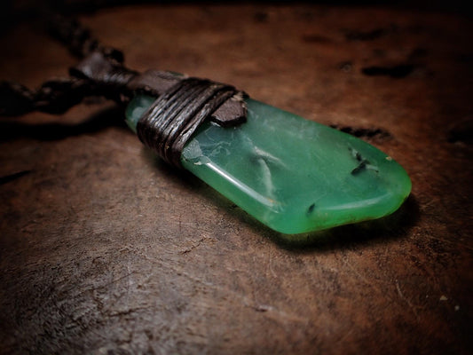 Chrysoprase Pendant on Adjustable Tribal Hand Woven Macrame Spiral Necklace
