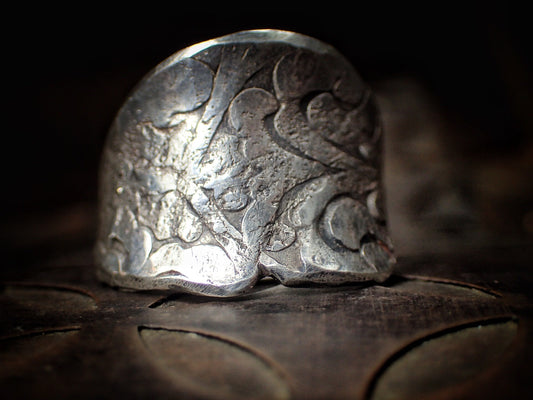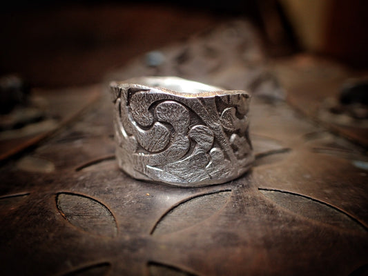 Rugged Pirate Hand crafted wide banded sterling silver ring Size 9.5