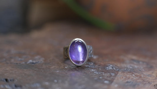 Beautiful Natural Amethyst and Paisly Textured Sterling Silver ring Size 8.25