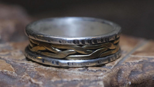 OOAK Songlines Sterling Silver and 9ct Gold Ring with Size 7