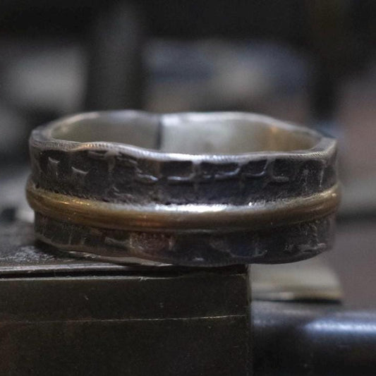 OOAK Textured Sterling Silver and 9ct Gold Ring with Size 8.5