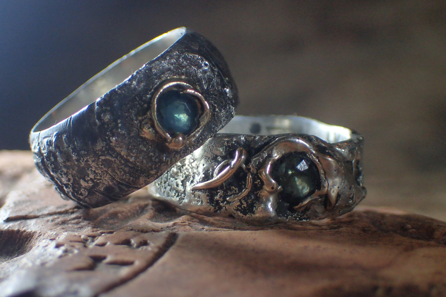 Bold Electric Blue Australian Opal Set in 9 ct Gold on a textured Sterling Silver Ring